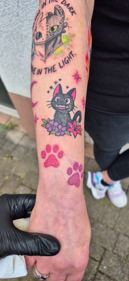 Als erfahrene Tätowiererin biete ich neben traditionellen Tattoo-Stilen auch Watercolor Tattoos an. Diese einzigartige Technik, die an die fließenden Pinselstriche und sanften Farbverläufe der Aquarellmalerei erinnert, fasziniert mich besonders. Wenn du ein Tattoo suchst, das durch leuchtende Farben und kreative, fließende Formen besticht, kann ich dir helfen, dein Wunschmotiv in diesem Stil umzusetzen.